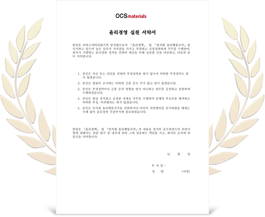 옥스머티리얼즈는 기업의 모든 경영활동에서 윤리와 책임을 최우선 가치로 삼고 있습니다.
